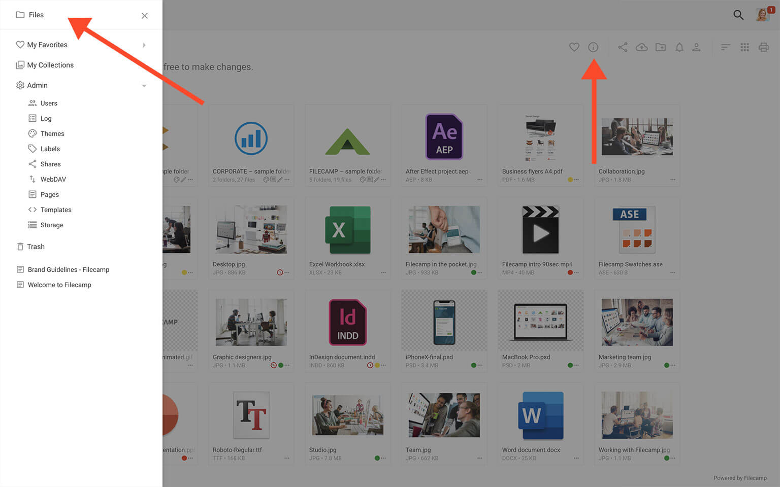 Customize your Filecamp account to reflect your company brand. With Filecamp Advanced and Professional plans, you can utilize multiple Themes within the same account.